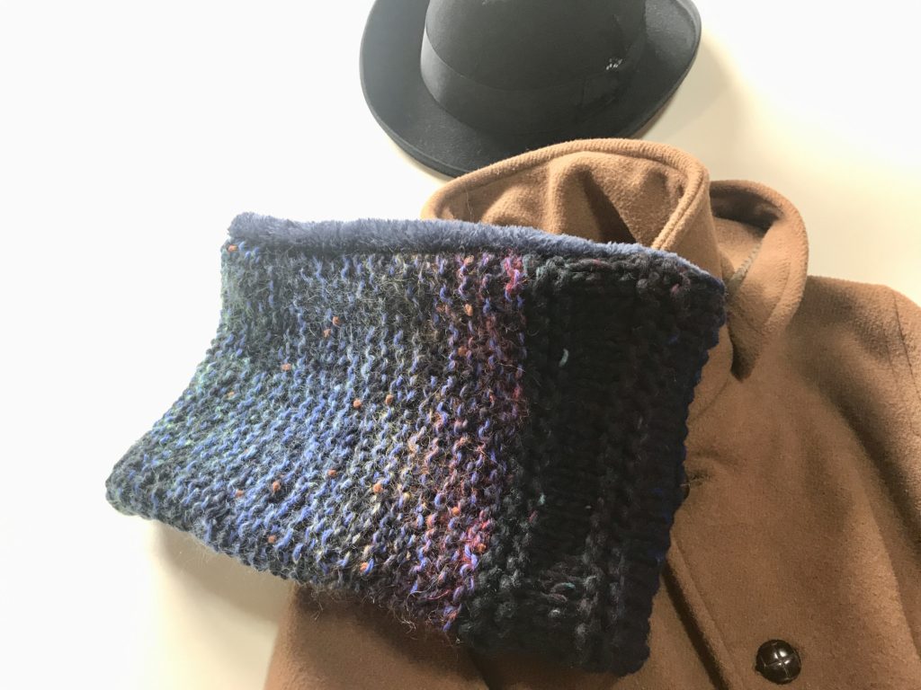 落ち着いた色合いでメンズスヌードはあまりモコモコしすぎないように、中の生地はフリースにしてみました。